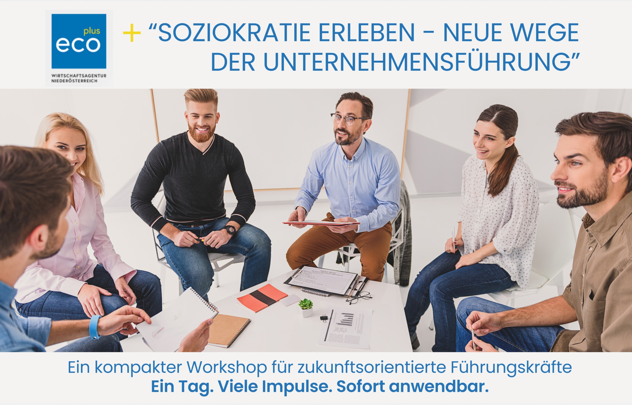 Detaillierte Infos & Anmeldung auf der Website der ecoplus: https://www.ecoplus.at/newsroom/ soziokratie-erleben-neue-wege-der-unternehmensfuehrung