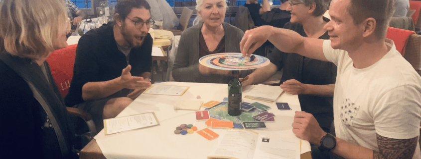 Als Abendaktivität bei Modul 4 haben vier Teilnehmende und unsere Ausbildungsleitung und Initiatorin des Konsentspiels, Barbara Strauch, gemeinsam Keep the Balance gespielt.