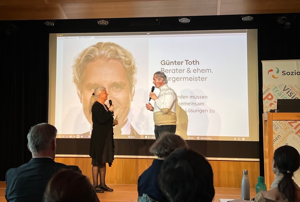 Günter Toth hat auch mitgeholfen, Soziokratie beim Gemeindebund bekannt zu machen und antwortete auf die Frage, warum dort die Türen offen waren: “Im Gemeindebund ist ein neuer Präsident, Johannes Pressl, der da extrem offen ist. Es ist da eine neue Generation, speziell auch von weiblichen Bürgermeisterinnen, und es geht nicht mehr hauptsächlich um ‘Machterhalt’. Es wird wahrscheinlich nicht leicht sein, bei der aktuellen Finanzsituation der Gemeinden das Thema Soziokratie zu platzieren, aber man muss einmal starten!” Für ihn ist die Gemeinde “die Arche Noah der Demokratie”. Die einzige Zelle, die von der Bevölkerung auch so wahrgenommen wird, als etwas, das gut ist, während die Landes- und Bundesebene nicht als nützlich wahrgenommen werden.
