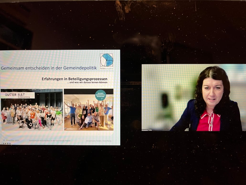 Annemarie Felder ist Organisationsentwicklerin & Prozessmoderatorin in Vorarlberg, und hat u.a. den GutenRat für Rückverteilung, initiiert von der Millionenerbin Marlene Engelhorn, moderiert. Sie sprach auf der Tagung “Gemeinsam entscheiden in der Gemeindepolitik” zum Thema: “Wie ist es gelungen, mit 50 zufällig gelosten Bürger:innen mit Konsent zu entscheiden? Was kann die Politik davon lernen?”