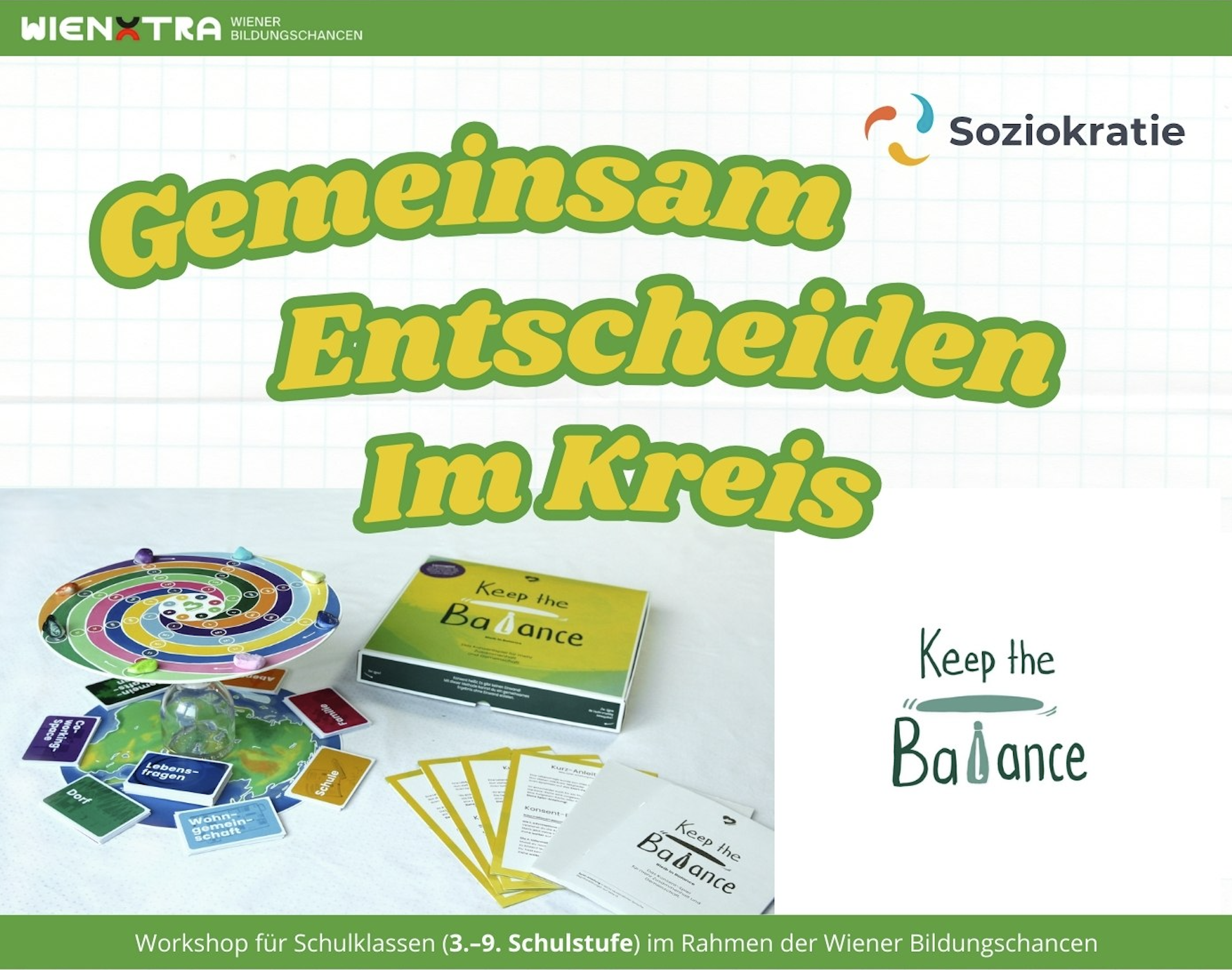 Im 4h Workshop GEMEINSAM ENTSCHEIDEN IM KREIS erleben Schülerinnen und Schüler (3.-9. Schulstufe), wie gemeinsame Entscheidungen in der Gruppe durch moderierte Kreisgespräche, gut gelingen können. Dabei lernen sie:
