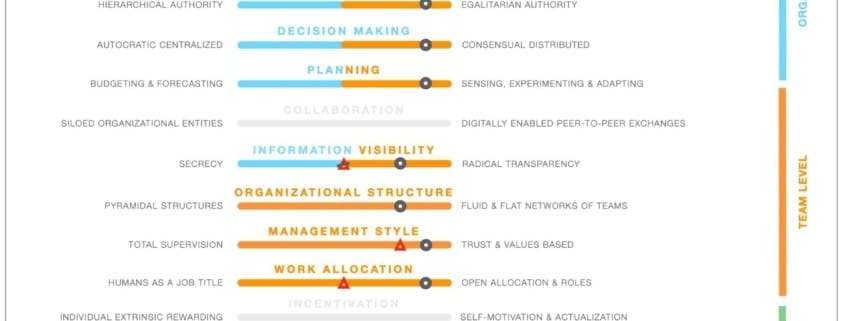 EMANUELE QUINTARELLI hat zum Vergleich und zur Bewertung von Selbstorganisation-Modellen die „Human Organization Map“ entwickelt.