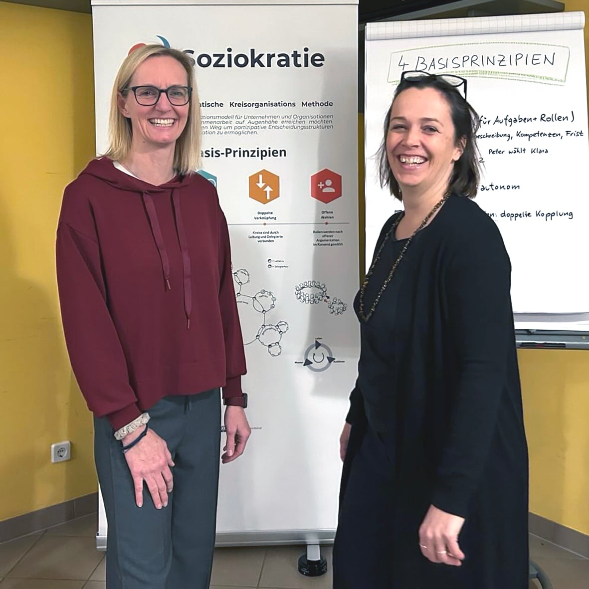 Elisabeth Wasserbauer und Ursula Brandner, die im CSE-Jahrgang 2024 soeben das Modul 8 ihrer Ausbildung zu Soziokratie-Expertinnen absolviert haben, arbeiten gemeinsam mit Barbara Strauch am Aufbau der neuen SoZe-Region Salzburg-Oberösterreich. Von nun an finden auch hier Informationsveranstaltungen, Ausbildungsmodule und weitere Aktivitäten rund um Soziokratie statt z.B. die Ausbildung von Gesprächsleiter:innen und der Aufbau einer regionalen Drehscheibe für Unternehmen und Organisationen, welche verstärkt partizipativ und zukunftsfähig arbeiten wollen. Unter dem Titel „Kennenlernabend Soziokratie“ finden bereits regelmäßig Informationsveranstaltungen statt.